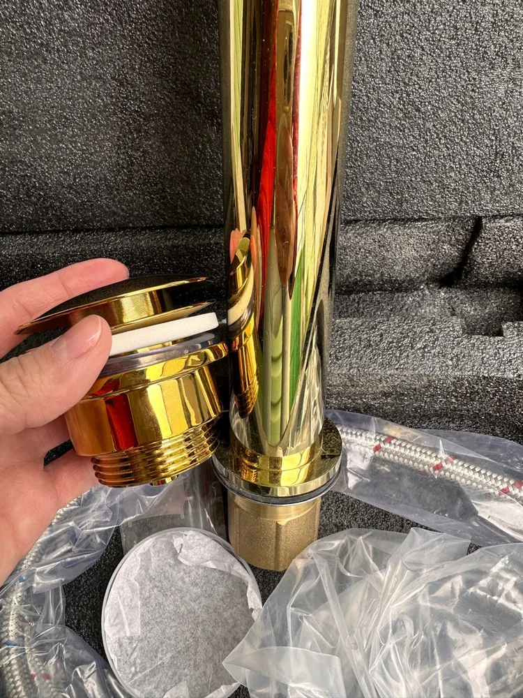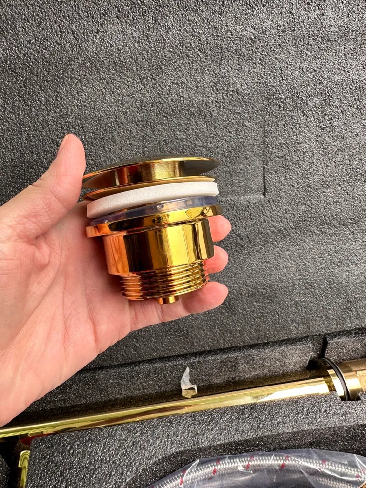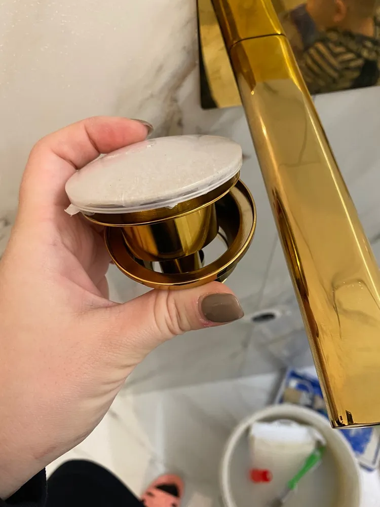 Его универсальная конструкция – это элегантное решение сложной дилеммы. Подходит для раковин как с переливным отверстием, так и без него, предлагая свободу там, где другие требуют компромисса. Регулируемая высота от 80 до 130 мм – это тонкая настройка под любую чашу, идеальная посадка без зазоров и люфтов. Золотое покрытие – не кричащая позолота, а благородное, стойкое сияние, которое диалогизирует с акцентами интерьера, будь то смеситель, полотенцесушитель или ручки шкафов.