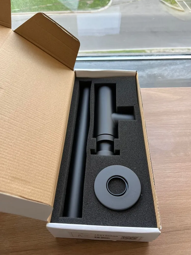 Его габариты (длина 346–371 мм, высота 209–329 мм) и диаметр подключения 32 мм (1 1/4") – это продуманная формула универсальности и компактности. Матовый чёрный цвет – это не просто оттенок, это заявление. Заявление о том, что даже скрытая от глаз деталь достойна быть совершенной, практичной и визуально безупречной. Он не скрывается, а гордо демонстрирует свою латунную сущность, защищённую стойким матовым покрытием, которое облегчает уход и смягчает глубокий тон.