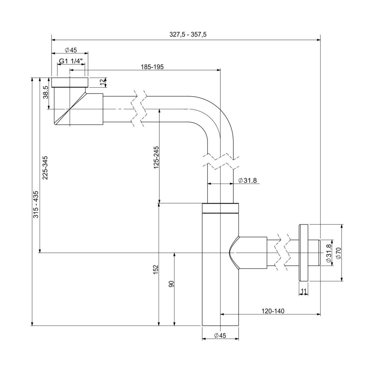Его диаметр 32 мм (1 1/4") – это универсальный язык, на котором говорят современные смесители и раковины. Длина от 328 до 358 мм – не просто цифры, а свобода манёвра в тесном пространстве под умывальником. Хромированное покрытие – это не только блеск, но и защита, тихая клятва верности десятилетиям безупречной службы. Это решение для тех, кто понимает: красота дизайна начинается там, где её не видно.