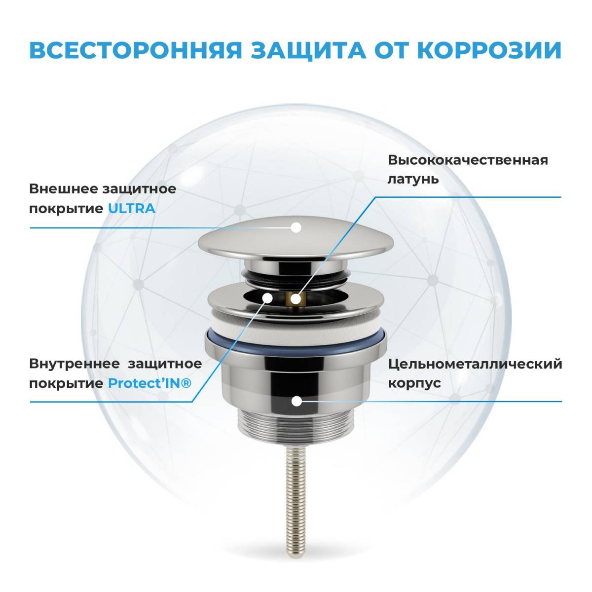 Ты смотришь на него – и понимаешь: это решение для тех, кто ненавидит компромиссы в мелочах. Блестящий хром – это не просто декор, это обещание. Обещание того, что через годы он будет сиять так же, как в первый день. Механика click-clack – это не «клик», а уверенный щелчок совершенства, который говорит: «закрыто» или «открыто» без полутонов. Это фурнитура, которая не обслуживает ванну – она возглавляет её гидродинамику.