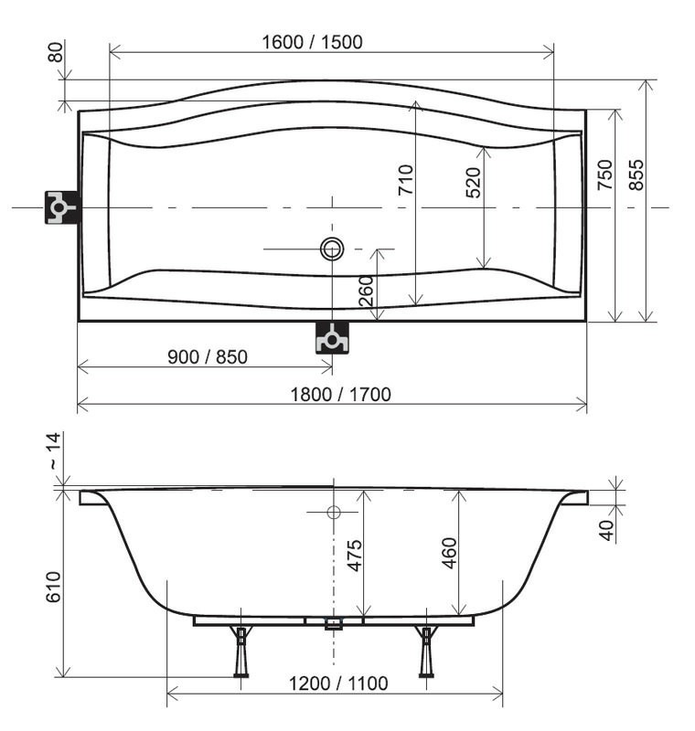 Размер ванны (Д*Ш), см 170*75