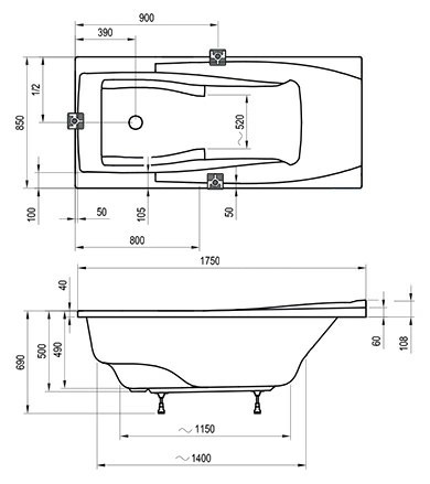 Акриловая ванна Ravak YOU 175x85 PU-PLUS WARM FLOW белая