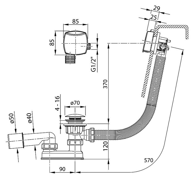 Слив-перелив Ravak X01440 с заполнением переливом II