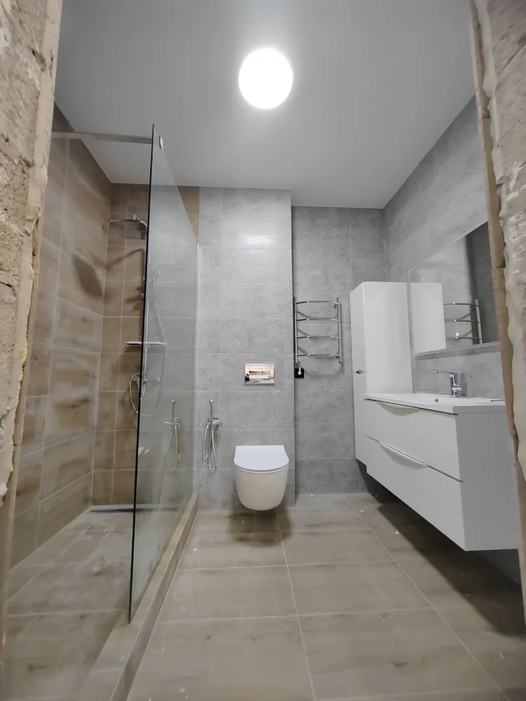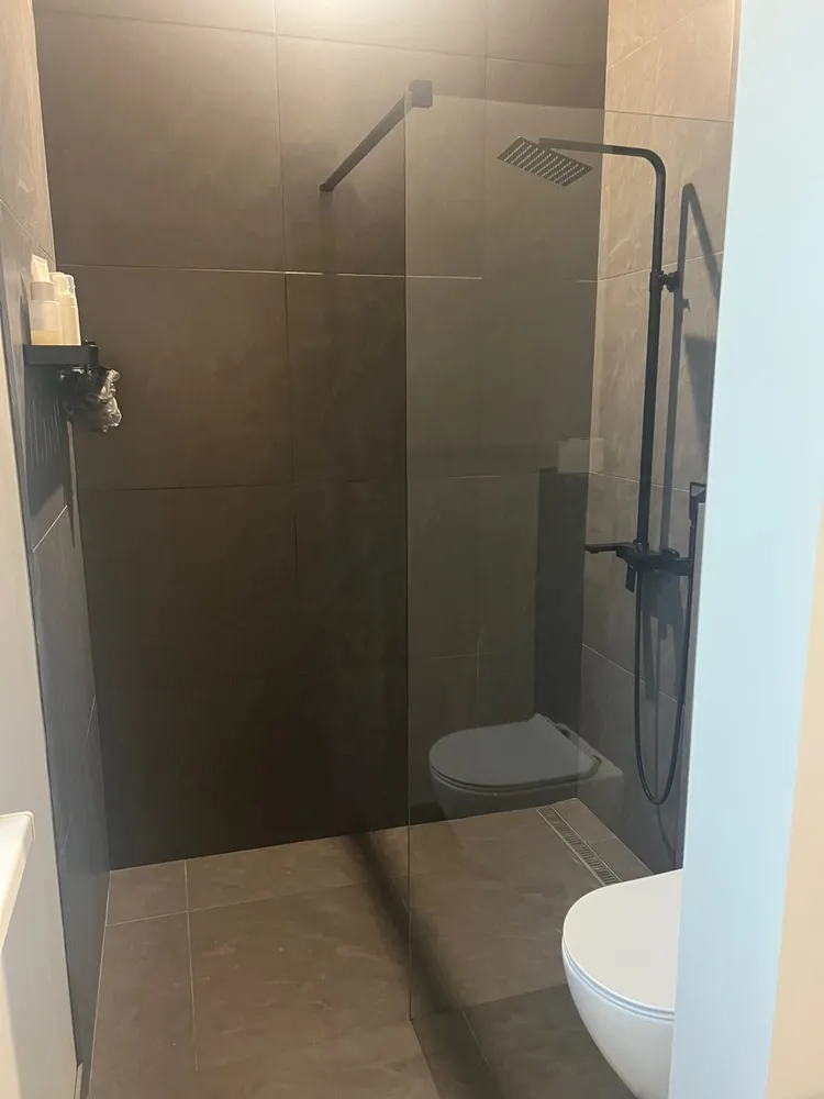 Ты смотришь на него – и видишь не ограждение, а расширение пространства. Отсутствие порога и рамы сверху создаёт эффект непрерывности пола и потолка. Стекло с голубым оттенком по краю не просто прозрачное – оно исчезает, оставляя только сияние воды и геометрию плитки за ним. Это решение для тех, кто устал от захлопывающихся дверей и тесных кабин. Свободный вход – это пространственная щедрость, доступная каждый день.