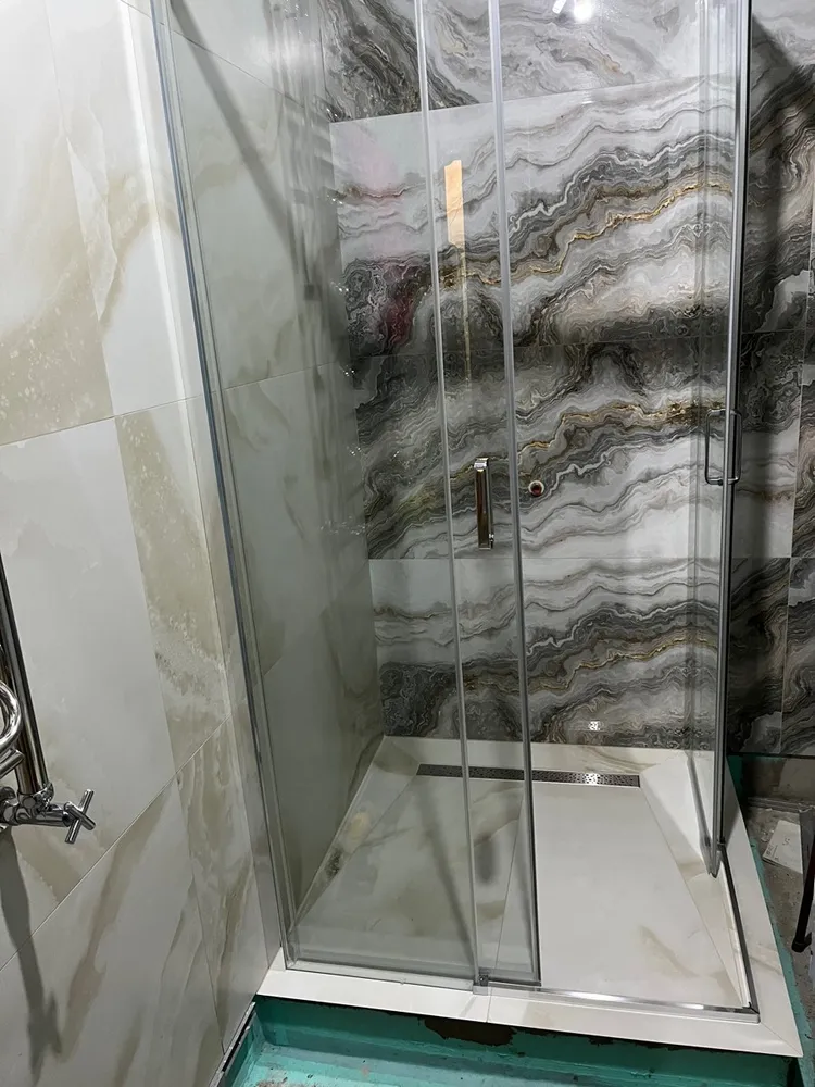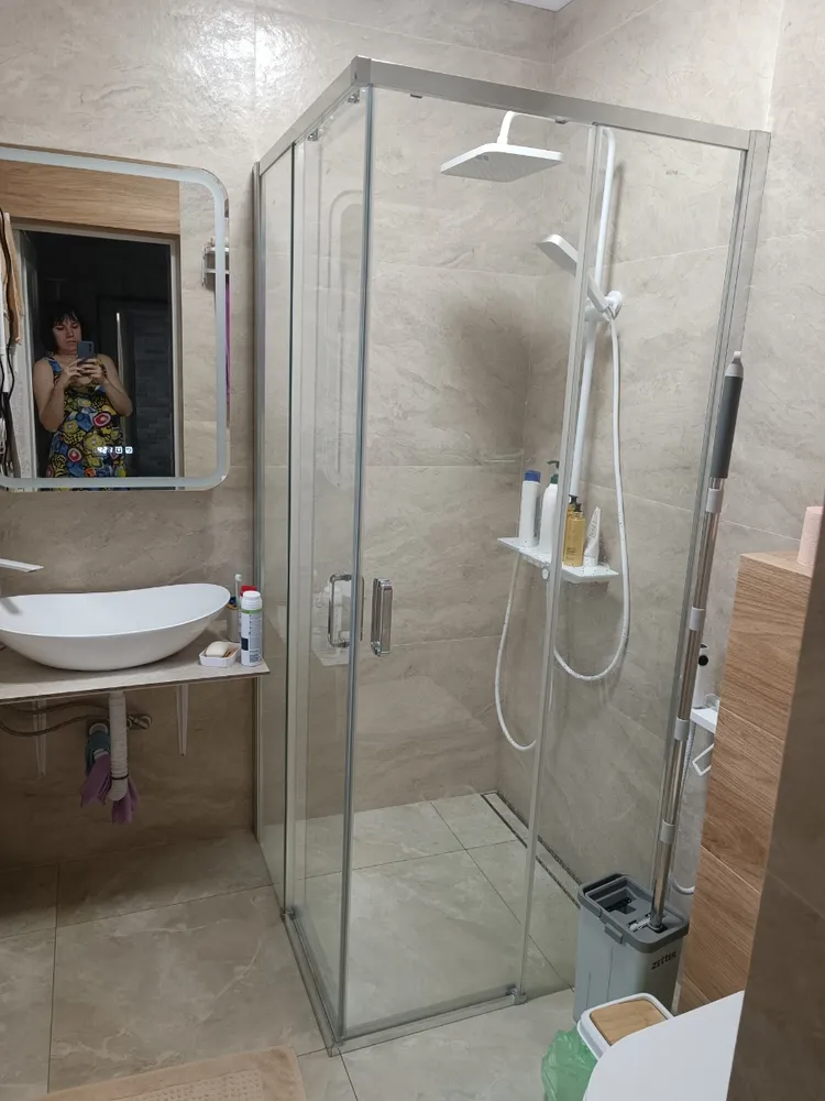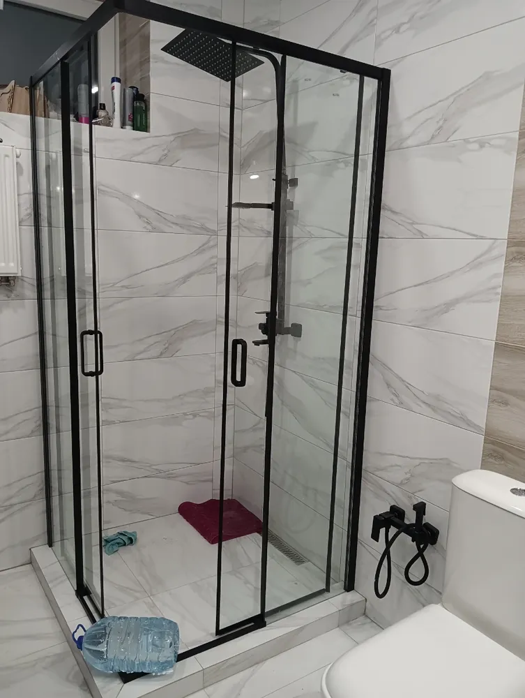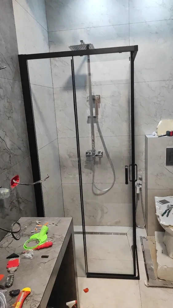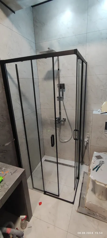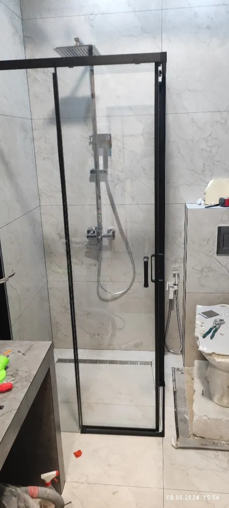 Ограждение 11011203 — это история не о разделении, а о выделении. Выделении особого места в доме, где ты можешь остаться наедине с водой и мыслями. Квадратная форма, раздвижные двери, чёрный профиль и невидимое стекло — это формула современной роскоши, где главное — это ощущение лёгкости и совершенной чистоты, как после дождя.