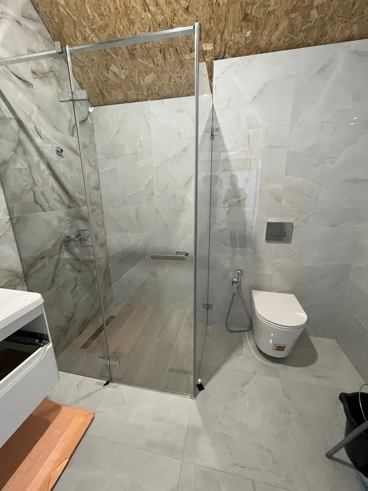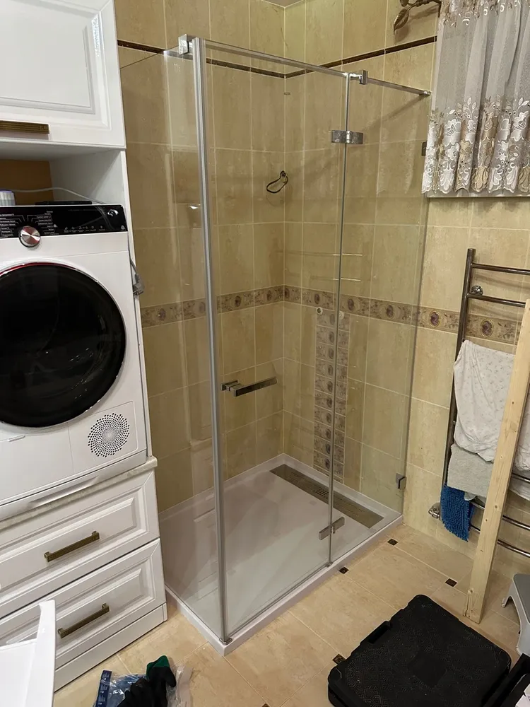 Когда ты открываешь дверь, её движение становится плавным и весомым, а практичные ручки с обеих сторон стекла предлагают тактильный комфорт. Это пространство для тех, кто понимает: роскошь – это не в изобилии деталей, а в их безупречном исполнении. Прямоугольная геометрия, распашная дверь, хром и абсолютная прозрачность – это формула современной ванной комнаты, где душ становится актом освобождения, а не уединения в тесноте.