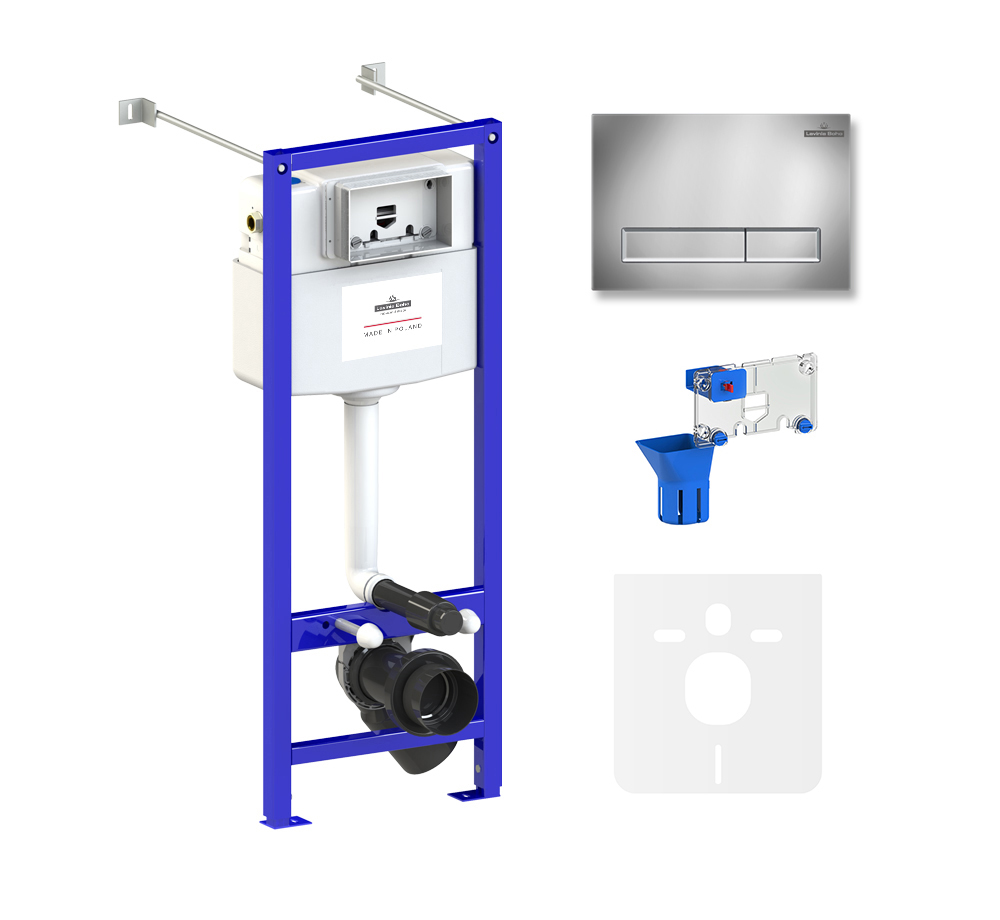 Инсталляция для унитаза комплект 5 в 1 Lavinia Boho Relfix 77020043: система инсталляции для подвесного унитаза, удлиненный комплект креплений, шумоизоляция, кнопка смыва, диспенсер