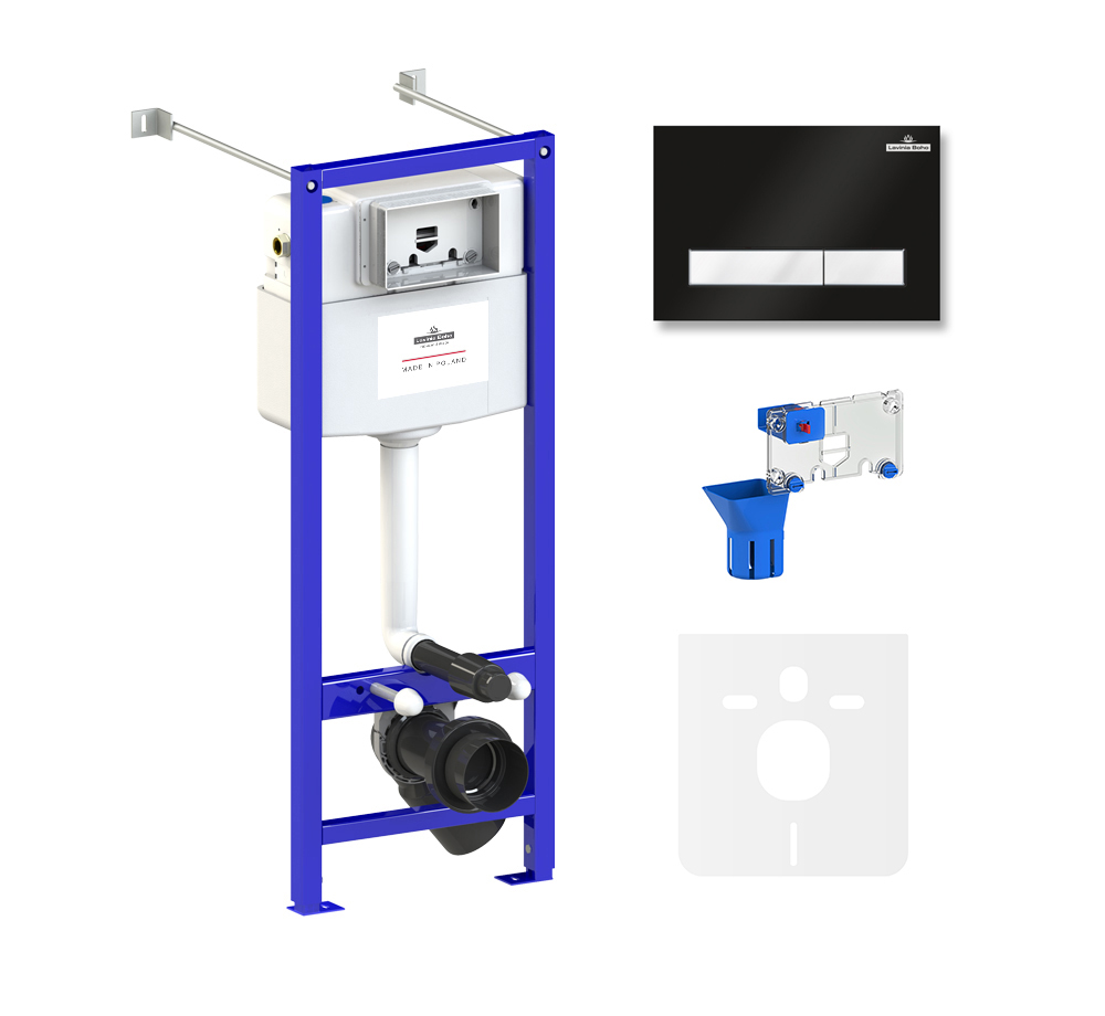 Инсталляция для унитаза комплект 5 в 1 Lavinia Boho Relfix 77020057: система инсталляции для подвесного унитаза, удлиненный комплект креплений, шумоизоляция, кнопка смыва, диспенсер