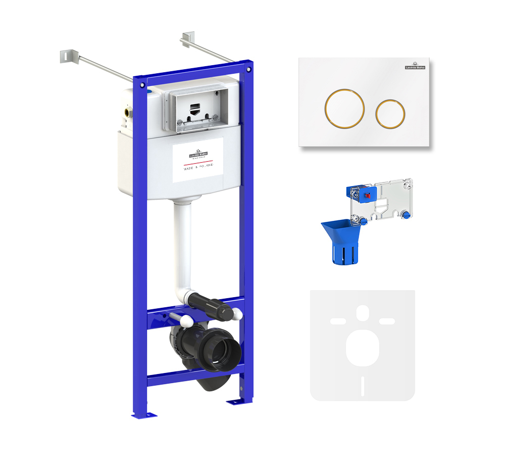 Инсталляция для унитаза комплект 5 в 1 Lavinia Boho Relfix 77020066: система инсталляции для подвесного унитаза, удлиненный комплект креплений, шумоизоляция, кнопка смыва, диспенсер