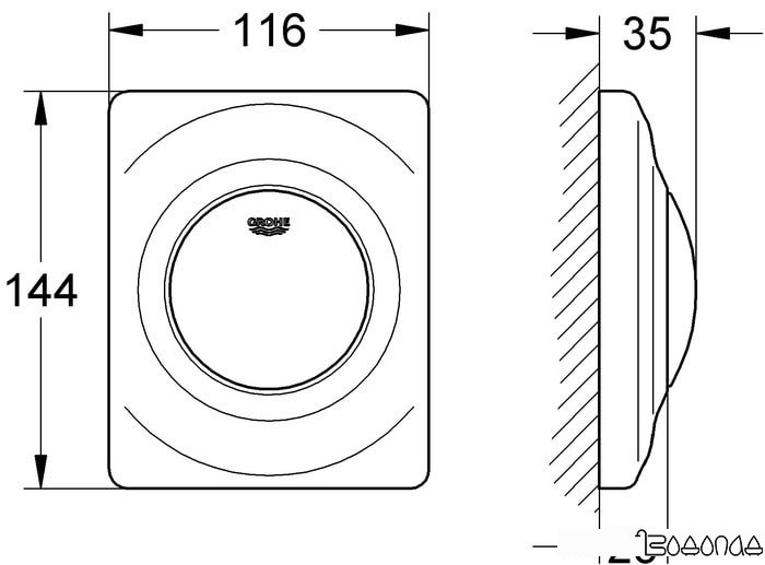 управление механическое, смыв одинарный, наружный монтаж, 116x144 мм, цвет: хром
