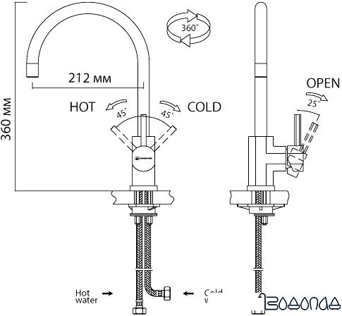 однорычажный смеситель для мойки, монтаж на раковину или столешницу