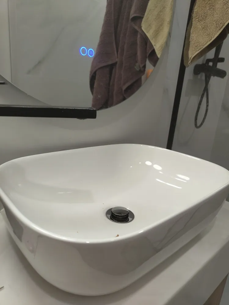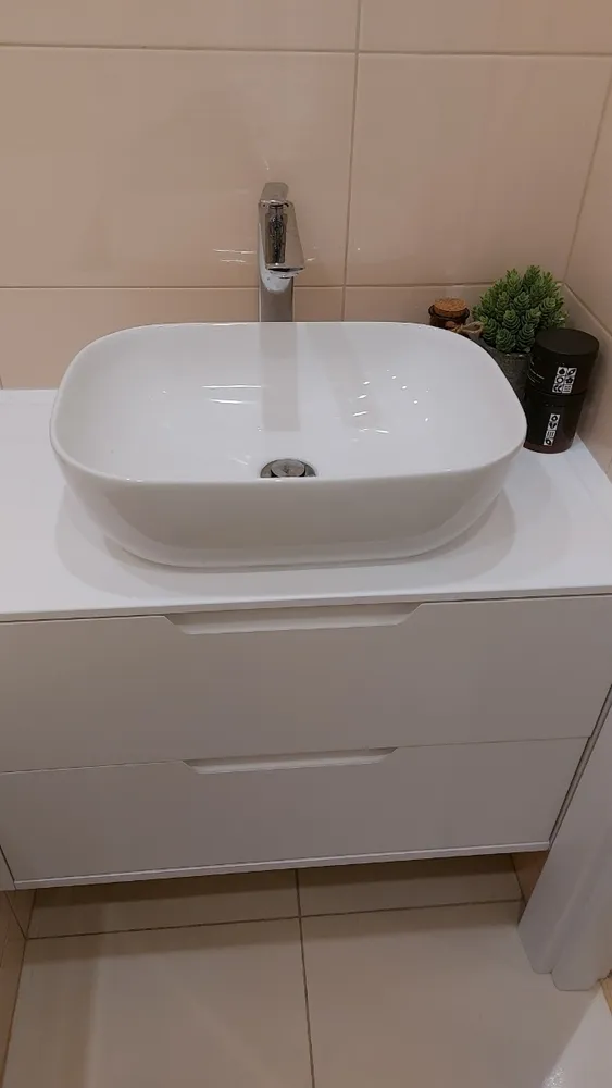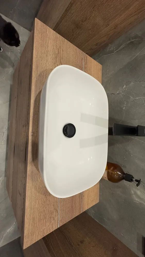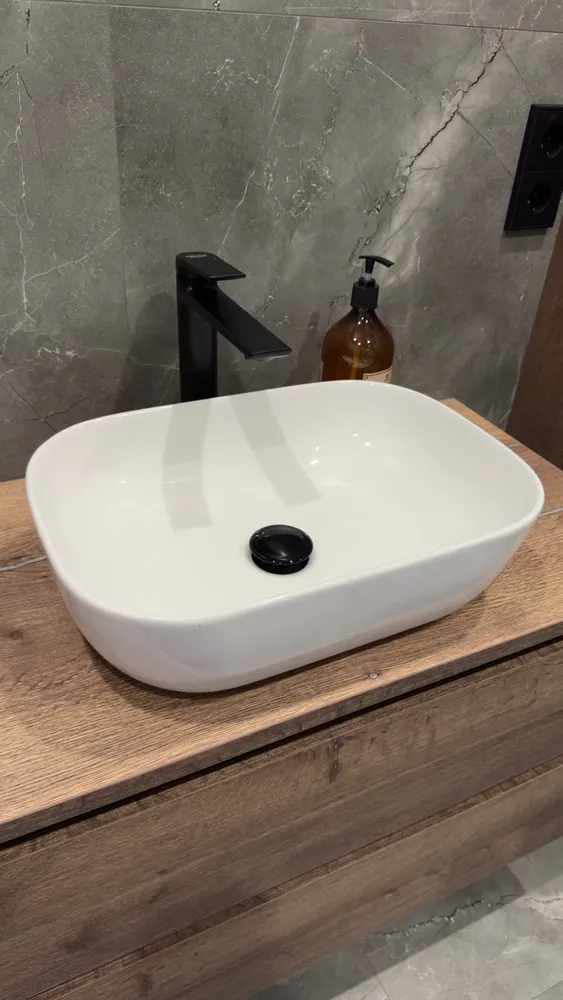 Когда ты подходишь к ней, прямоугольная форма задаёт чёткие границы личного пространства для умывания. Отсутствие отверстий под смеситель и перелив открывает свободу для творчества – ты можешь выбрать любую конфигурацию подводки, любой дизайн крана. Это раковина-союзник, готовая вписаться в твою уникальную историю обустройства дома.