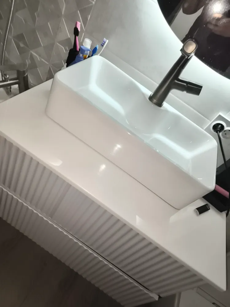 Когда ты подходишь к ней, всё становится на свои места. Универсальное отверстие под смеситель ждёт твоего выбора – хром, матовый чёрный, золото или total white. Это раковина-партнёр, которая не спорит, а дополняет. Это начало твоего личного пространства утренней ясности, где каждая деталь, от донного клапана до струи воды, работает на одно – на твой комфорт и ощущение гармонии.