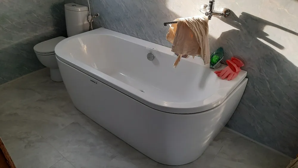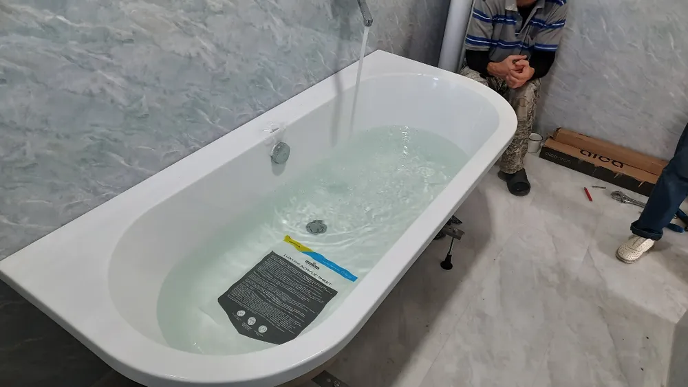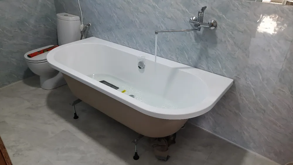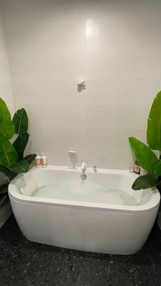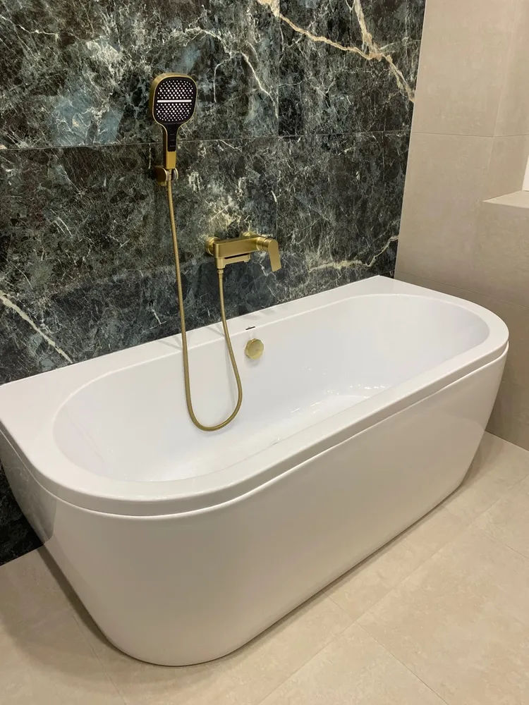 Включаете воду, и она начинает заполнять пространство, словно звёздная пыль, окутывая вас теплом и нежностью. Белый акрил мерцает, словно поверхность далёкой планеты, создавая атмосферу загадочности и волшебства.