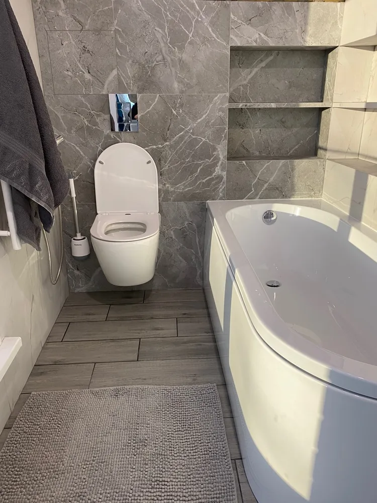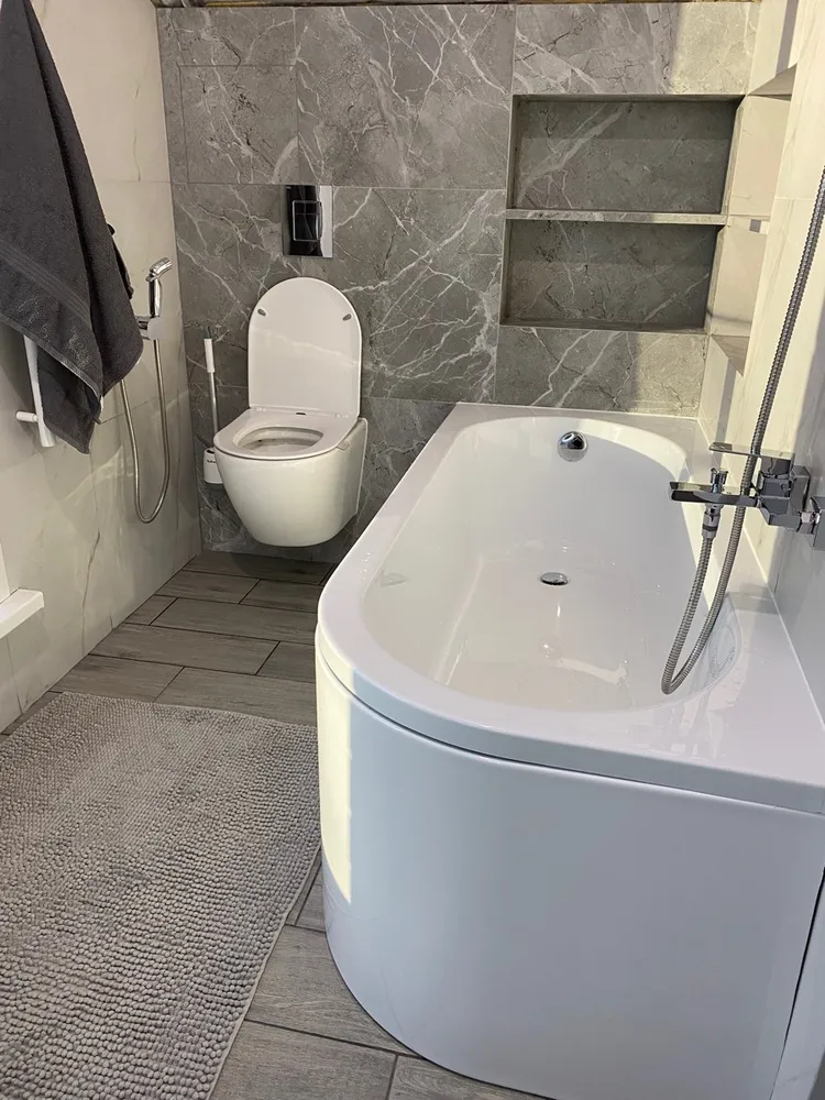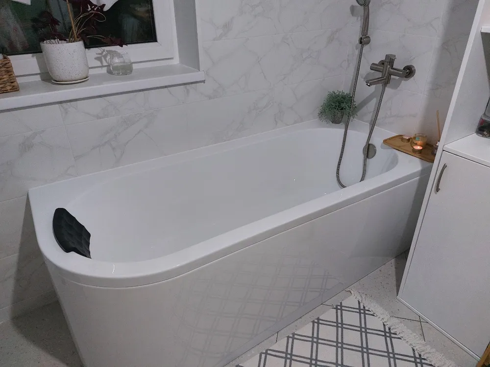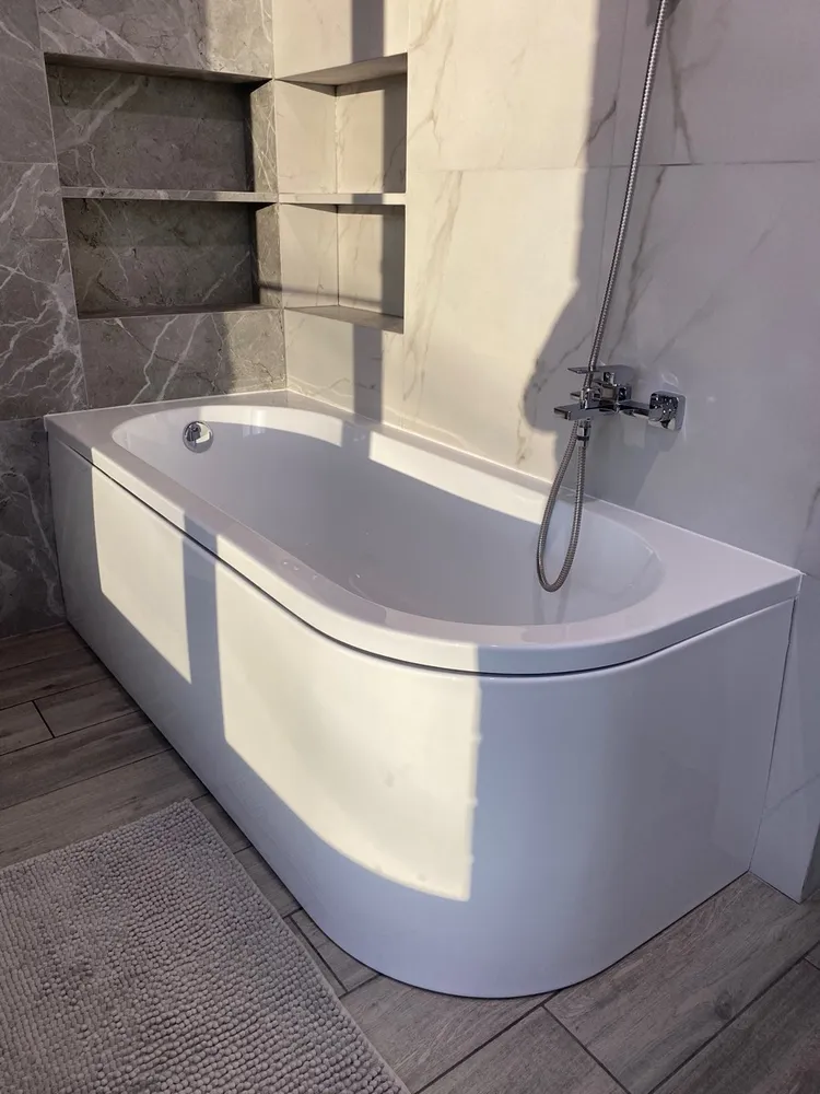 Правосторонняя ориентация позволяет удобно разместить ванну в углу ванной комнаты, экономя пространство и создавая уютный уголок для отдыха.