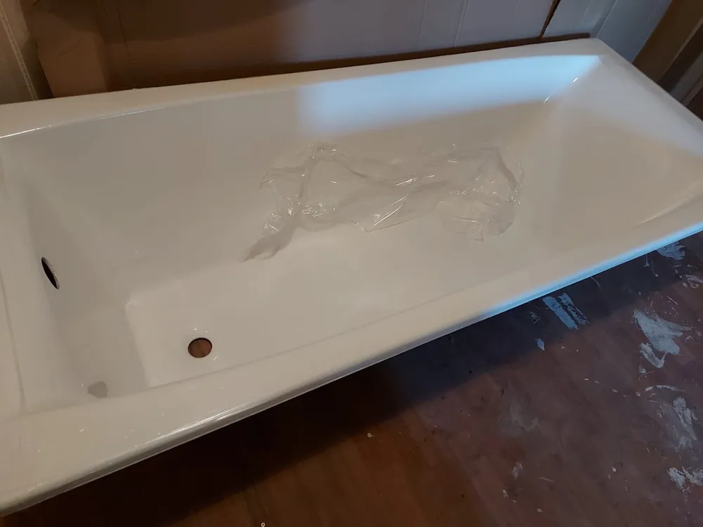 Трёхслойное эмалевое покрытие наносится с добавлением титановой пудры высшего качества по той же эталонной технологии, но теперь на увеличенную поверхность. Толщина эмали выдерживается с прежней точностью: 1–2 мм на дне ванны и 0,5–0,8 мм на стенках, создавая покрытие эталонной равномерности на большей площади.