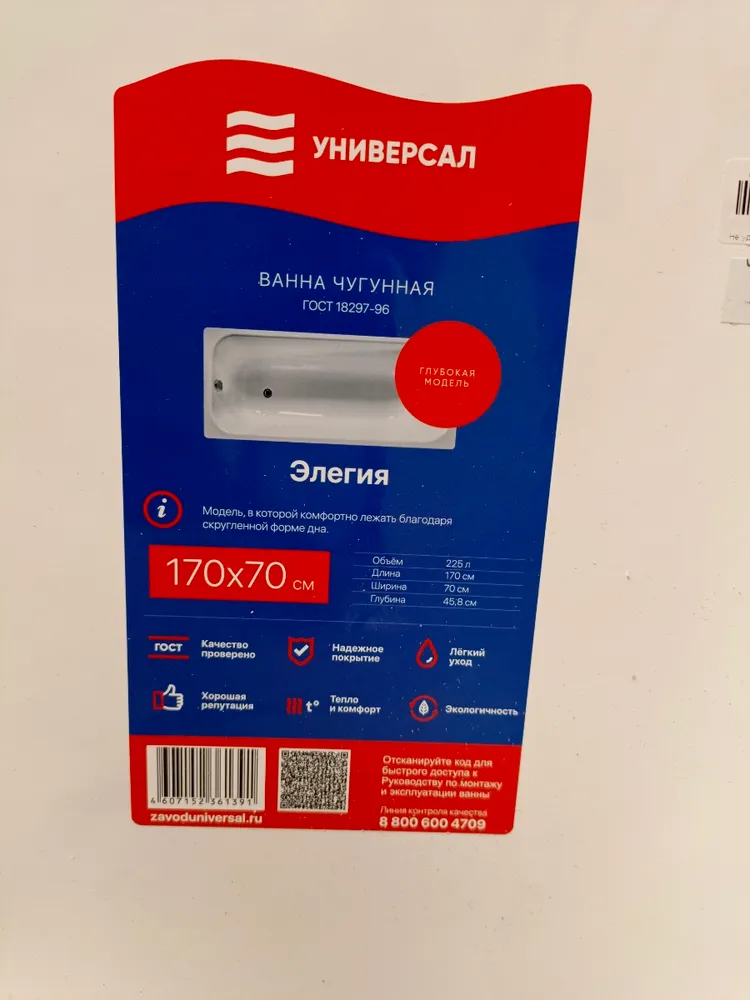 Чугунная ванна НОСТАЛЬЖИ 150×70 производится Новокузнецким заводом «Универсал» — предприятием, сохранившим лучшие традиции российского чугунного литья. Увеличенная длина 150 см обеспечивает дополнительный комфорт, делая её идеальным выбором для тех, кто ценит простор, но не готов жертвовать классическими пропорциями.