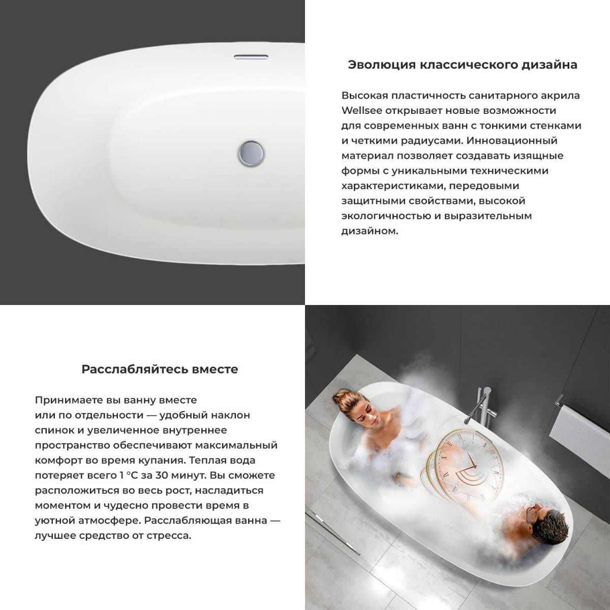 Отдельностоящая акриловая ванна Wellsee Câlin 230201002 – это объятие, сотканное из чистого белого света. Когда овальная форма растворяется в монохромной белизне, а глянцевые поверхности начинают диалог с отражениями, рождается не просто ванна – рождается сферическое тихое место, где материальное граничит с созерцанием.