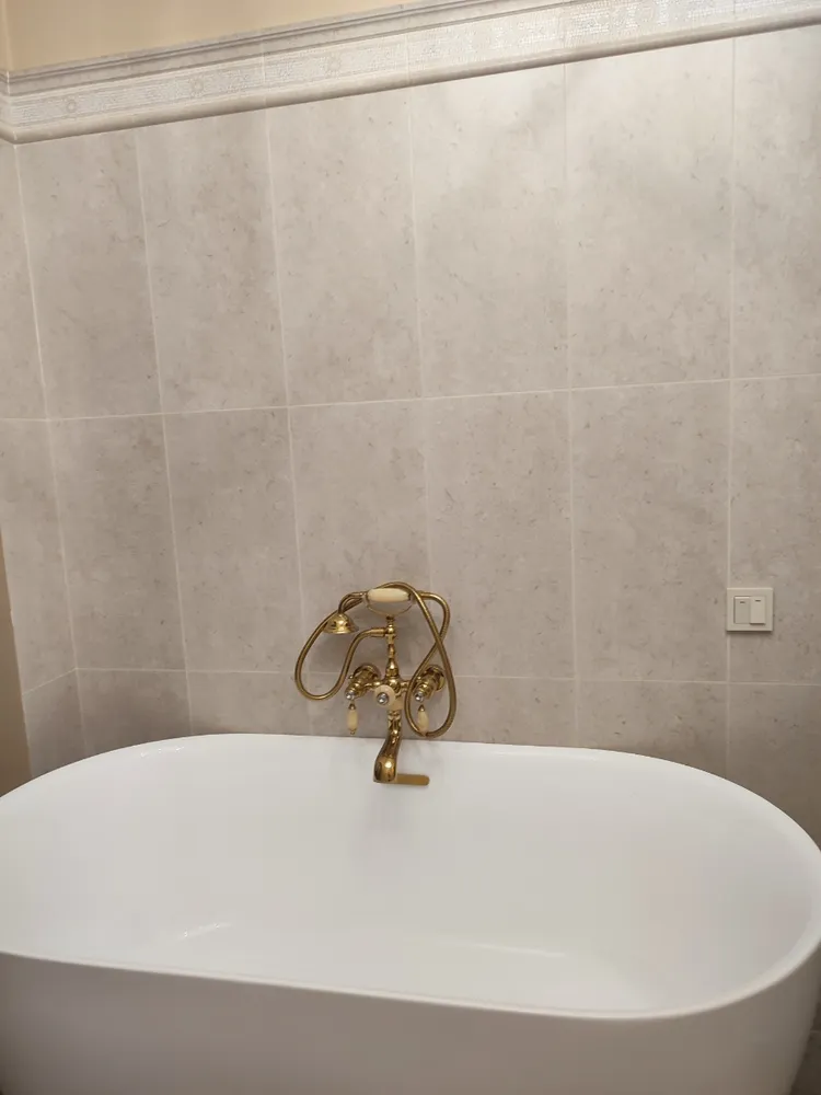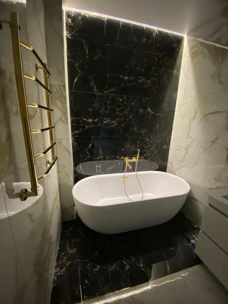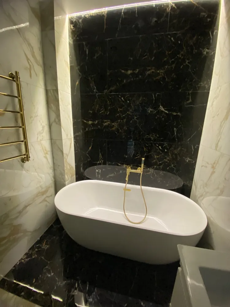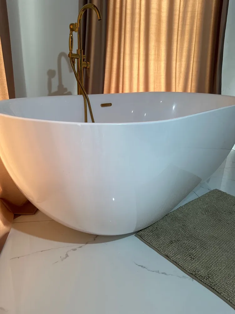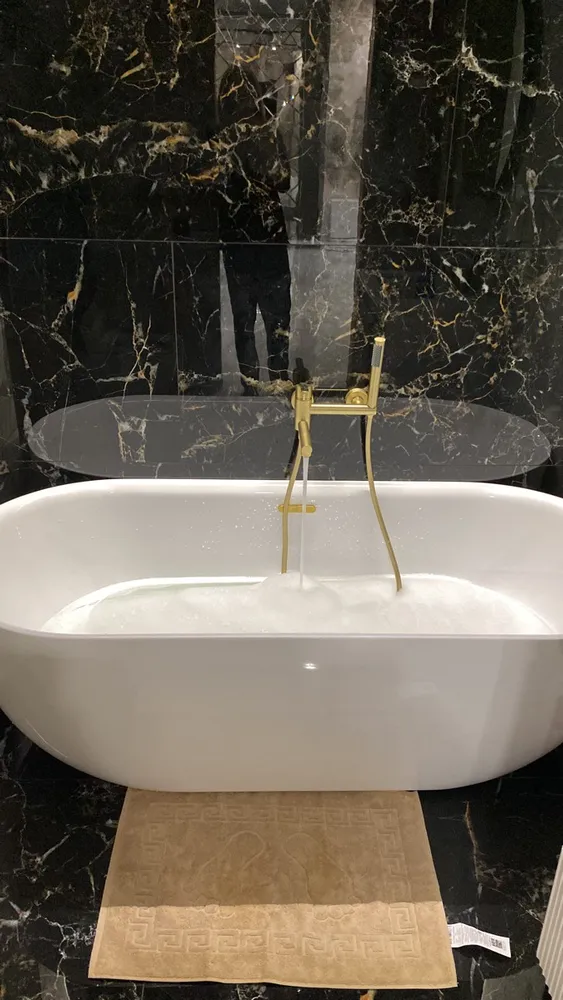 Когда ты погружаешься в неё, золотая фурнитура ловит малейшие лучи света, наполняя пространство тёплым, живым сиянием. Это больше чем купание – это церемония. Церемония возвращения к себе настоящему, к чувству собственного достоинства, к пониманию, что ты заслуживаешь не просто удобства, а красоты, которая лечит душу. Это ванна для тех, кто умеет ценить паузы, кто превращает ежедневные ритуалы в маленькие праздники для себя.