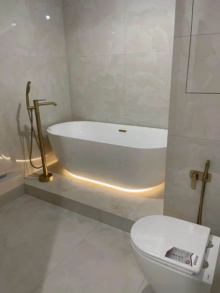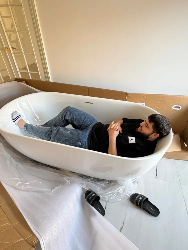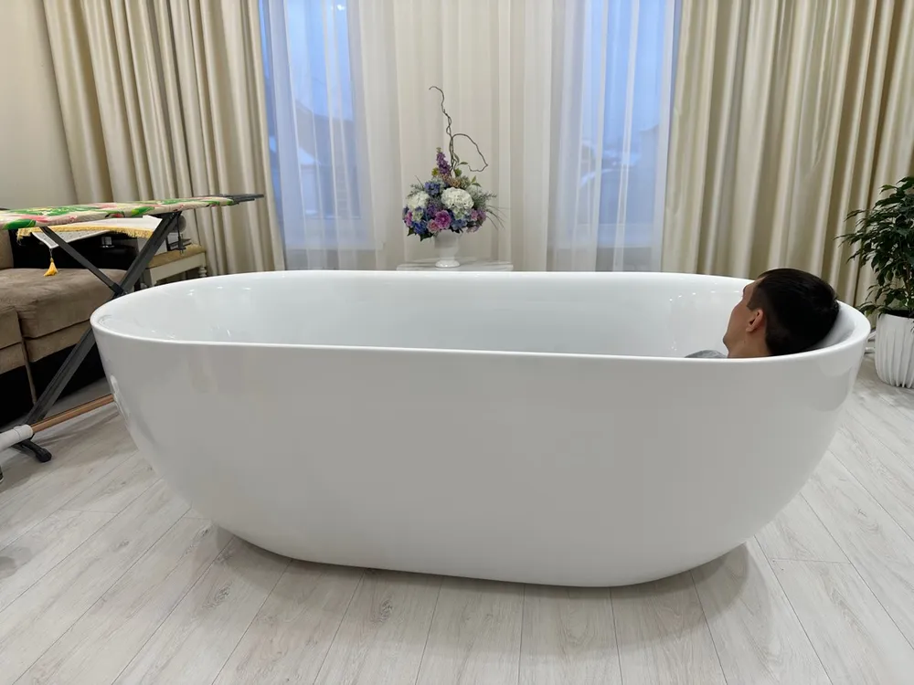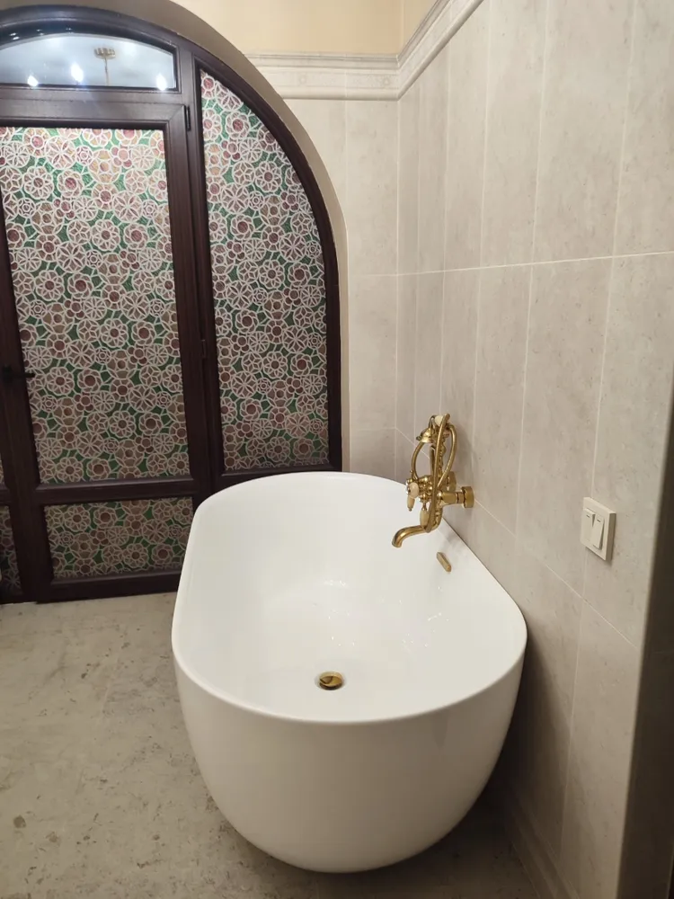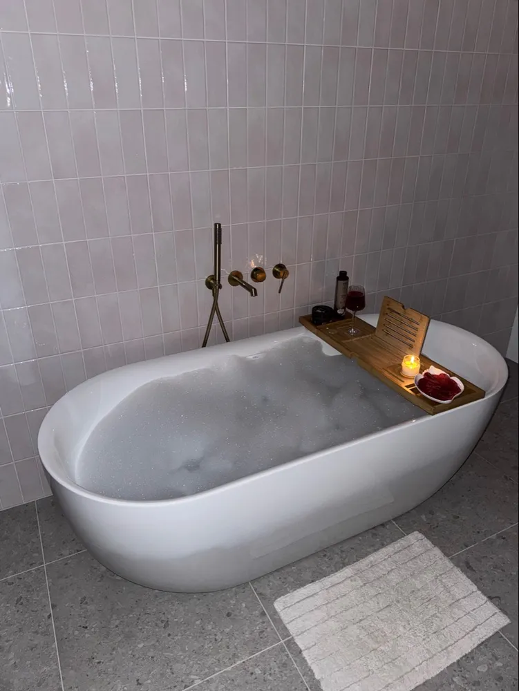 Когда ты погружаешься в неё, золотая фурнитура ловит малейшие лучи света, наполняя пространство тёплым, живым сиянием. Это больше чем купание – это церемония. Церемония возвращения к себе настоящему, к чувству собственного достоинства, к пониманию, что ты заслуживаешь не просто удобства, а красоты, которая лечит душу. Это ванна для тех, кто умеет ценить паузы, кто превращает ежедневные ритуалы в маленькие праздники для себя.