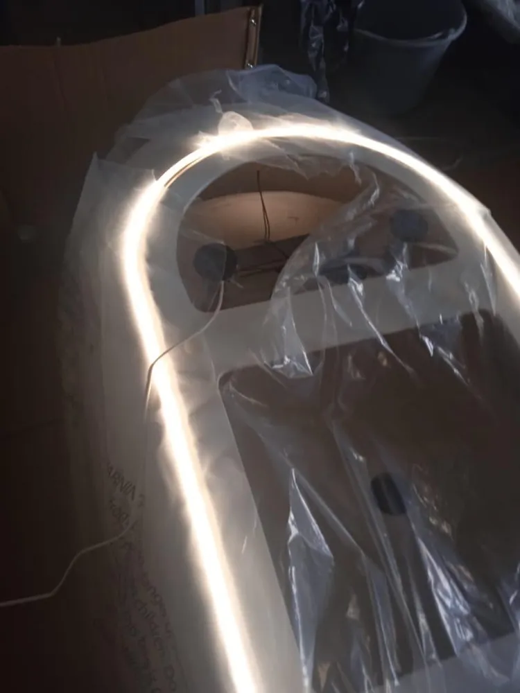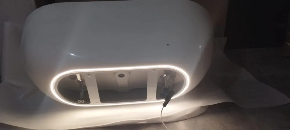 В её белизне, подчёркнутой золотом и светом, читается уверенность будущего. Толщина литьевого акрила CastAcryl с двойным армированием обеспечивает жёсткость, достойную такого технологичного объекта. Это основа, которая не просто выдерживает вес воды и тела, но и служит идеальным холстом для световой инсталляции. Глянцевая поверхность множит отражения, превращая пространство в бесконечный лабиринт из света и тени.