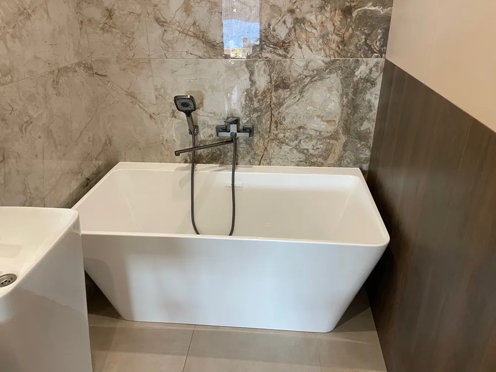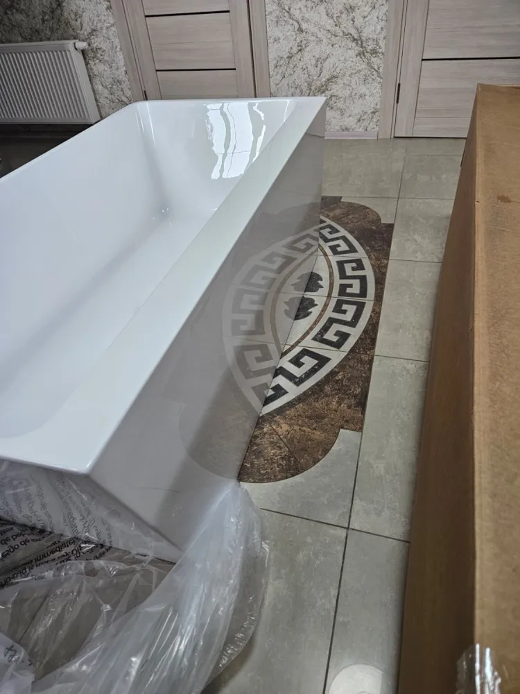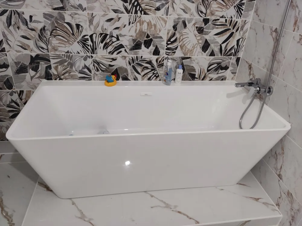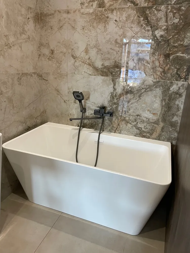 Ты смотришь на неё – и понимаешь: это ванна для тех, кто не боится смелых решений. Цельнолитая конструкция на элегантных ножках создаёт эффект парящего объекта, а несъёмный экран замыкает композицию, превращая её в самодостаточную скульптуру. Матовое покрытие soft-touch притягивает взгляд своей бархатистой глубиной, создавая идеальный контрапункт глянцевой белизне акрила. Это не просто сантехника – это интерьерный объект, задающий тон всему пространству.