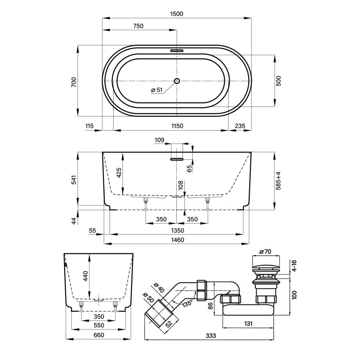 Её 150 на 70 см – это идеальный баланс между компактностью и свободой. Размеры, созданные для городских апартаментов, где каждый сантиметр пространства должен работать на эстетику и комфорт. Матовый чёрный слив-перелив 231924000 – это не просто деталь, это графический штрих, подписывающий белоснежную форму. Saint-Germain в версии white & matte black – это когда парижский шик получает современное прочтение через контраст.
