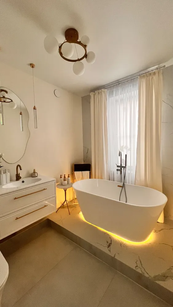 Ты смотришь на неё – и понимаешь: это ванна для тех, кто ищет не площадь, а ощущение. Её форма не прямоугольная и не овальная – она органичная. Она не занимает пространство, а создаёт его, обволакивая мягким коконом. Отдельностоящая установка позволяет оценить эту скульптурность со всех сторон, а встроенные ножки создают эффект лёгкого парения над полом. Матовый чёрный – не кричащий акцент, а интеллектуальный штрих, напоминающий о глубине.