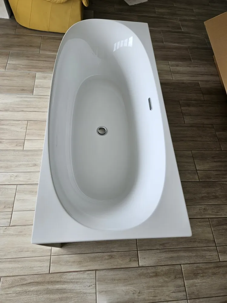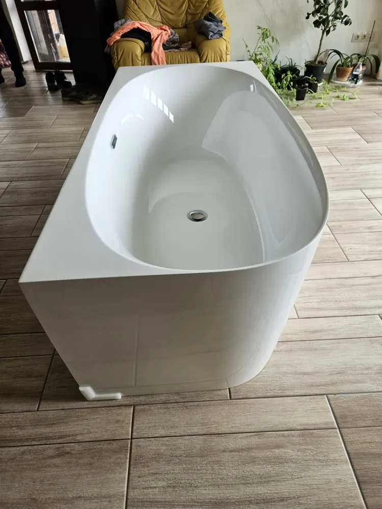 Когда ты погружаешься в неё, золотая фурнитура ловит отсветы света, играя мягкими бликами на воде. Эргономичная форма поддерживает спину, а левосторонний слив становится частью интуитивно понятного сценария расслабления. Это пространство для тех, кто понимает: настоящая роскошь – это не избыток, а точность. Точность линий, точность выбора материалов, точность того чувства, что ты находишься именно там, где должен быть.
