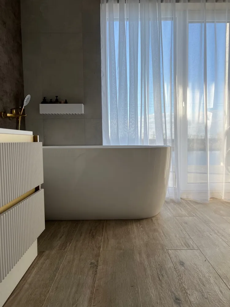 Когда ты наполняешь её водой, белизна оживает, играя бликами и отражениями, наполняя комнату мягким, рассеянным свечением. Правостороннее расположение слива кажется естественным и не привлекающим внимания. Пространство вокруг становится светлее, просторнее, чище. Это не просто место для омовения тела – это процедура очищения для взгляда и для мыслей. Капсула белого шума, где внешний мир остаётся за порогом.