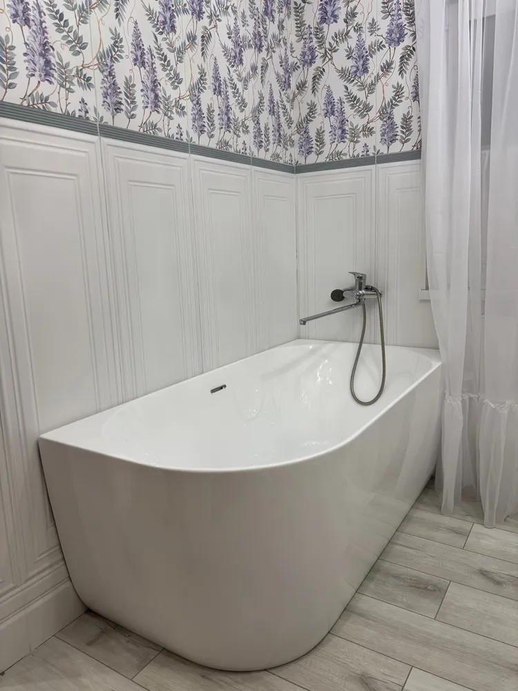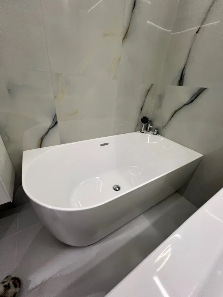 Ты смотришь на неё – и понимаешь: это ванна для тех, кто не играет в дизайн по правилам. Матовый чёрный на белом – это классический дуэт, переосмысленный через призму современного минимализма и индустриальной эстетики. Это не кричащий контраст, а уверенный, почти архитектурный штрих. Он добавляет форме весомости, подчёркивает линию борта, придаёт всему объекту скульптурную выразительность. В правосторонней компоновке этот диалог выглядит особенно органично и осмысленно.