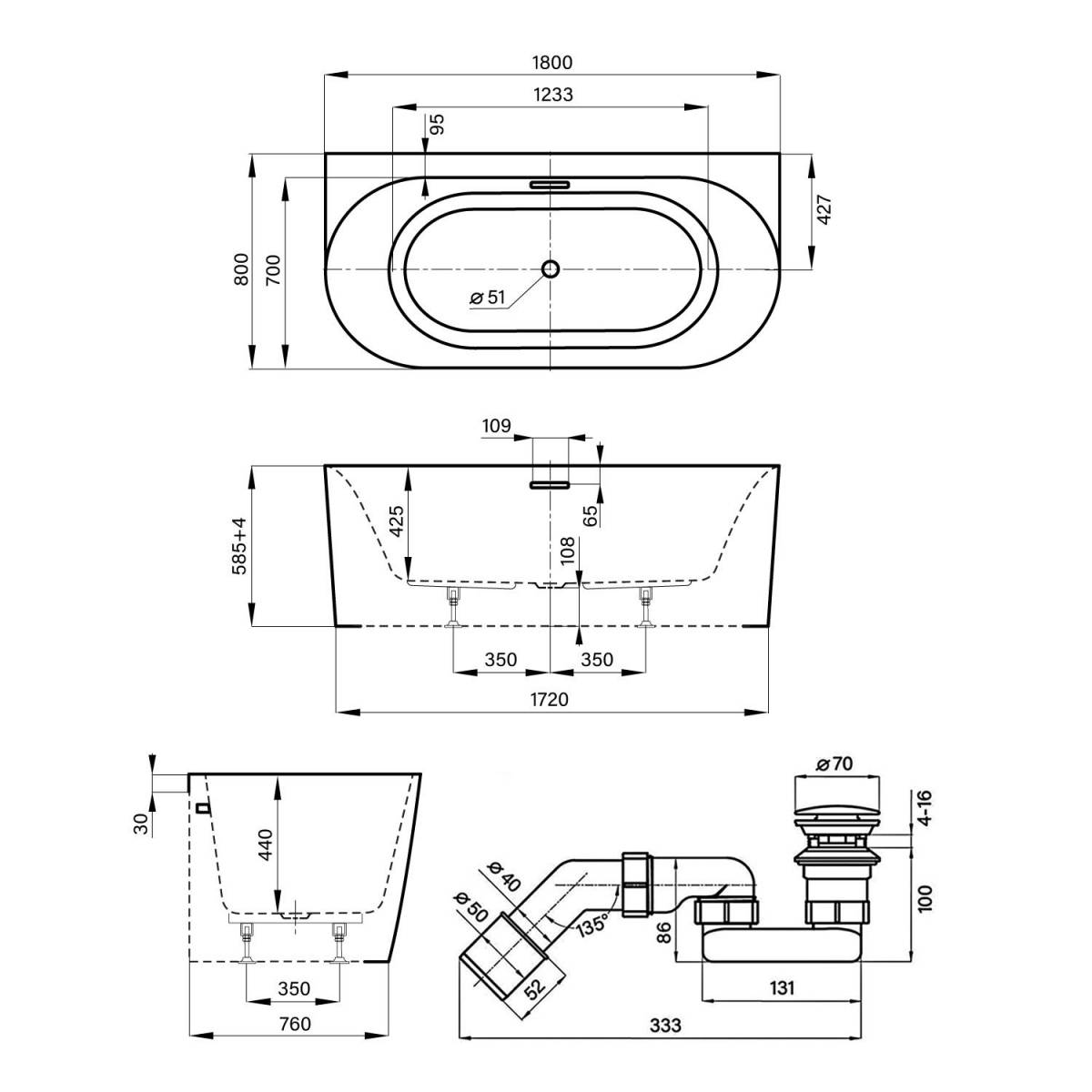 Её 180 на 80 см – это пропорции, созданные для полного погружения в тишину. Глянцевый белый слив-перелив 231922000 не прерывает монохромную гармонию, а становится её естественным продолжением, создавая эффект монолитной световой скульптуры. Набор «4 в 1» – это готовое решение, где каждая деталь, от ванны 289102000 до несъёмного экрана, работает на одну идею: безупречный комфорт без компромиссов.