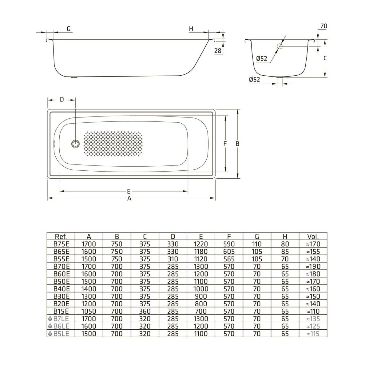 Размеры 170×70 см делают эту ванну легендарным решением для роскошнейших ванных комнат и высочайших планировок, где превыше всего ценится абсолютное использование преимуществ стальных конструкций с императорски расширенным комфортом. Дополнительные 65 см длины по сравнению с базовой моделью обеспечивают поистине имперский комфорт при сохранении всех достоинств стальных ванн.