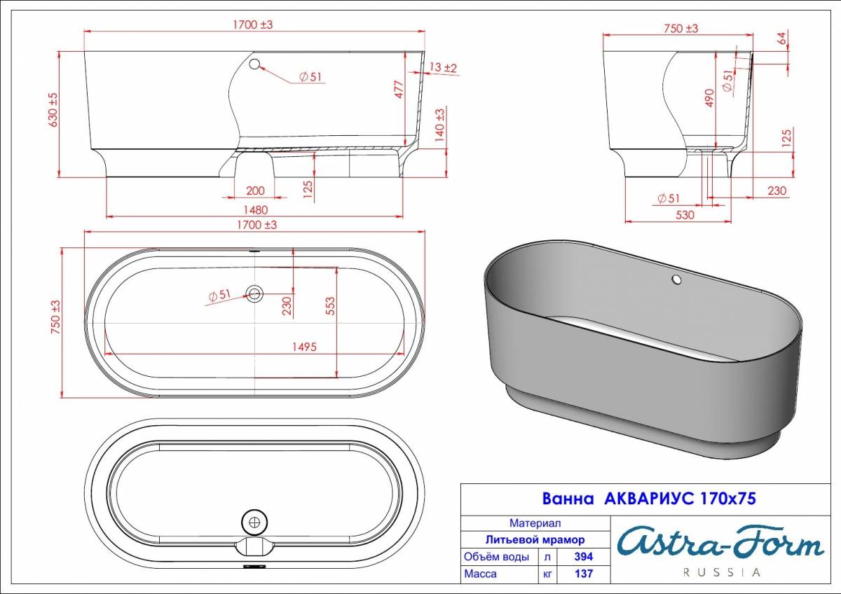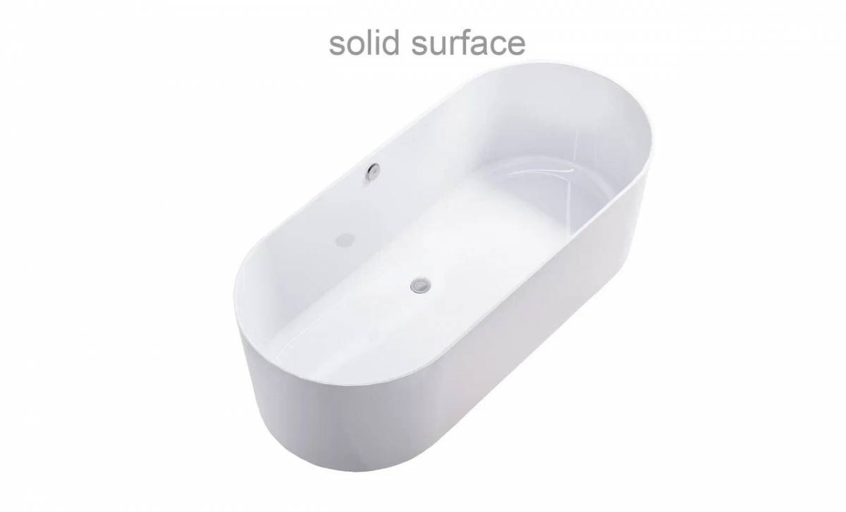1700 на 750 мм – это выверенная классическая геометрия, обеспечивающая комфортное размещение. Овальная форма отдельностоящей ванны Аквариус – это элегантное решение, которое органично вписывается в современный интерьер. Материал – Solid Surface – композит на основе акриловых смол и минеральных наполнителей. Толщина стенок 13 мм. Главная особенность: материал однородно белый на всю толщину, не требует защитного покрытия, матовая поверхность – естественная структура, а не нанесённый слой.