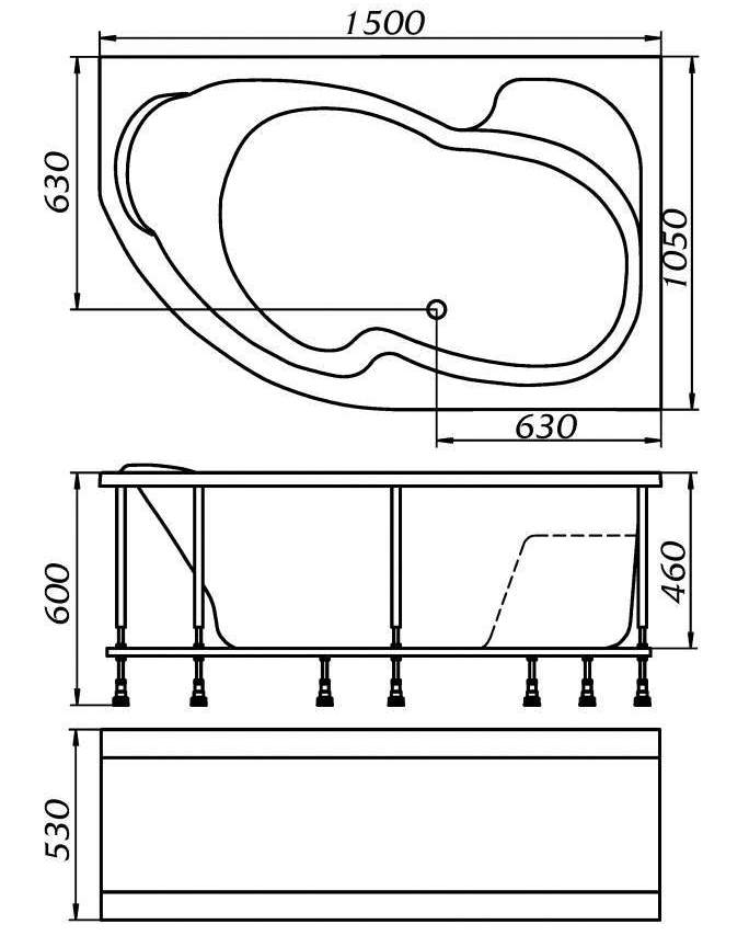 Размер ванны (Д*Ш), см 150*105