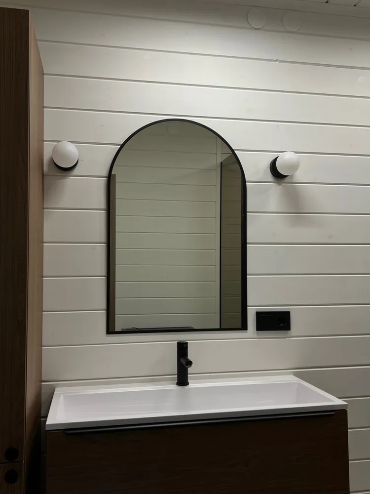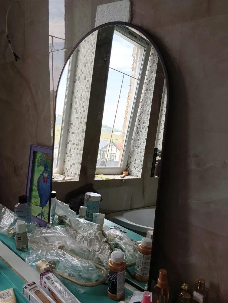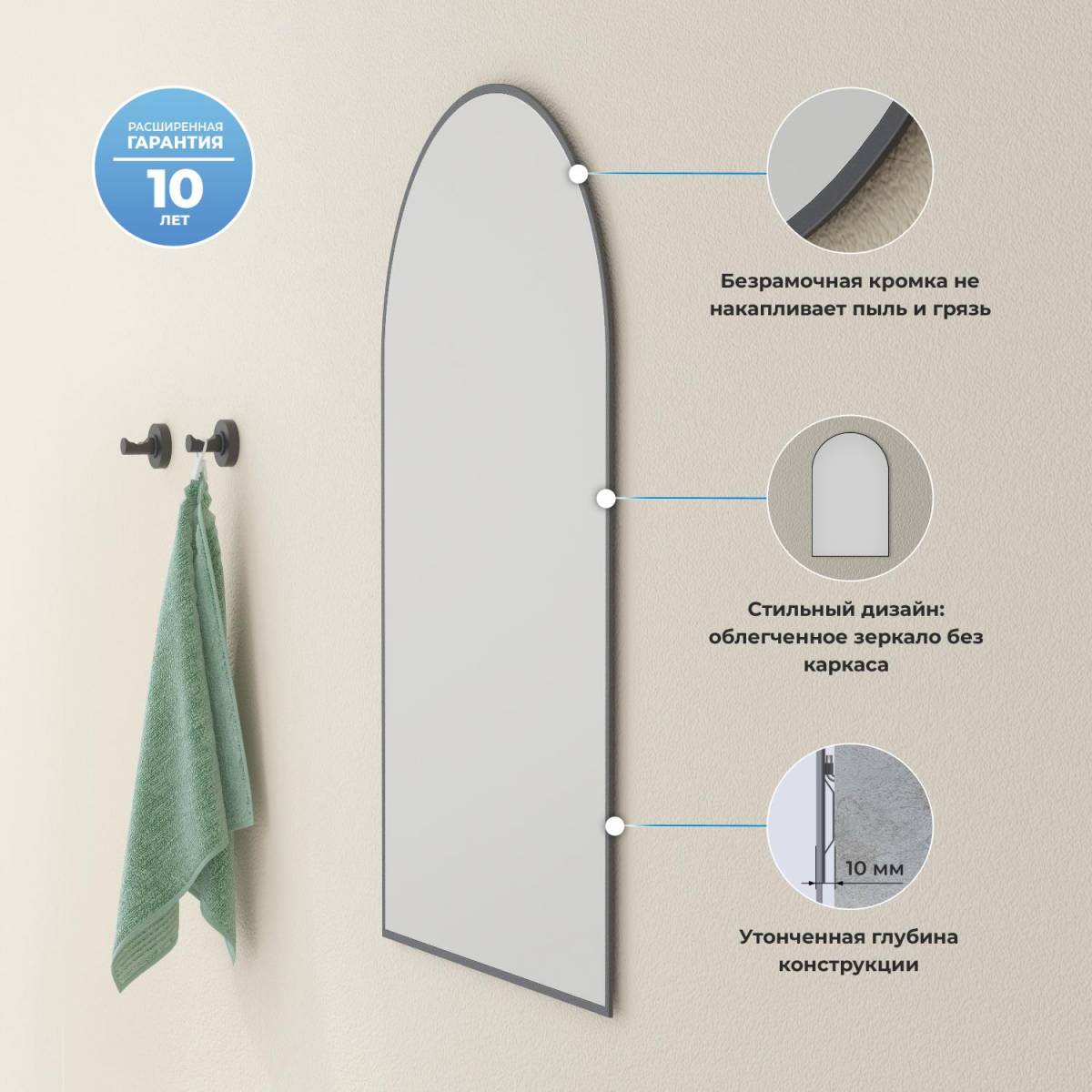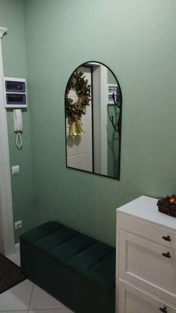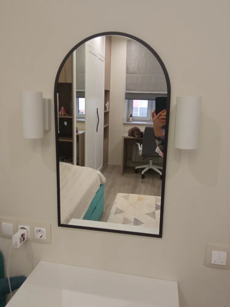 Его 40 на 70 см – это золотой стандарт для диалога с собой. Вертикальный формат повторяет силуэт, арочная верхняя грань добавляет интерьеру архитектурной лёгкости. Чёрный контур – не рамка, а графическое тире, которое ставит акцент на главном: на твоём отражении. Это зеркало для тех, кто не ищет компромиссов между функцией и эстетикой.