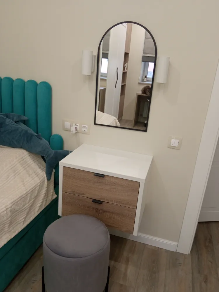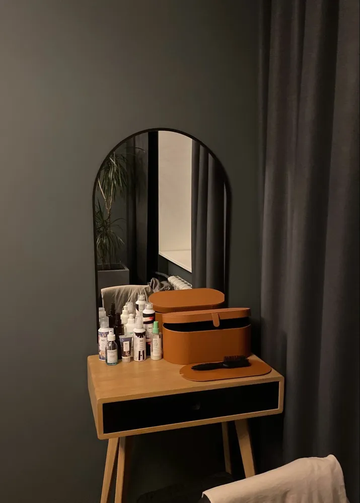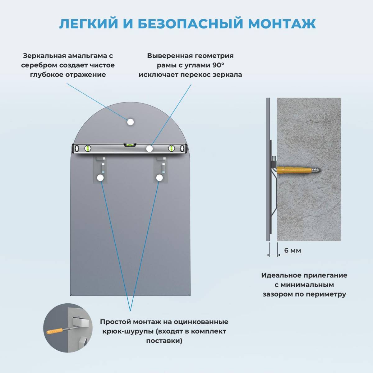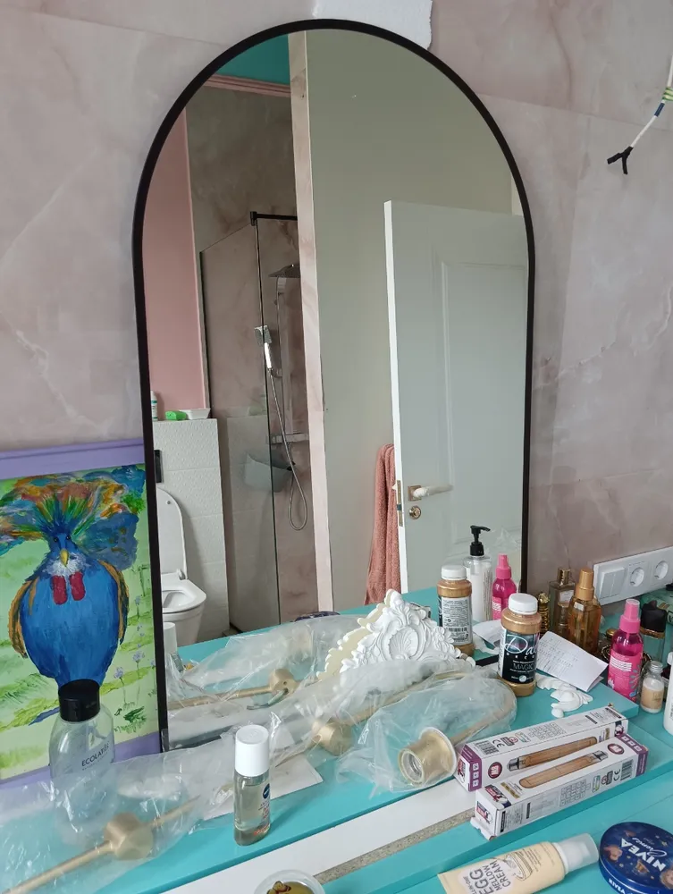 Его 40 на 70 см – это золотой стандарт для диалога с собой. Вертикальный формат повторяет силуэт, арочная верхняя грань добавляет интерьеру архитектурной лёгкости. Чёрный контур – не рамка, а графическое тире, которое ставит акцент на главном: на твоём отражении. Это зеркало для тех, кто не ищет компромиссов между функцией и эстетикой.
