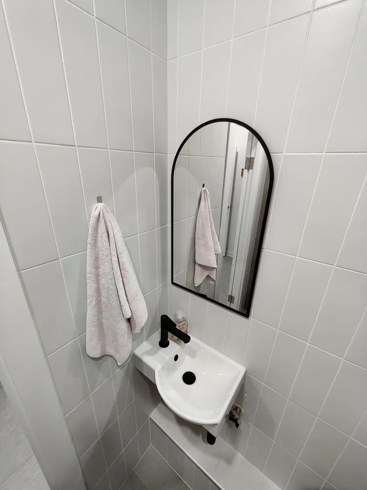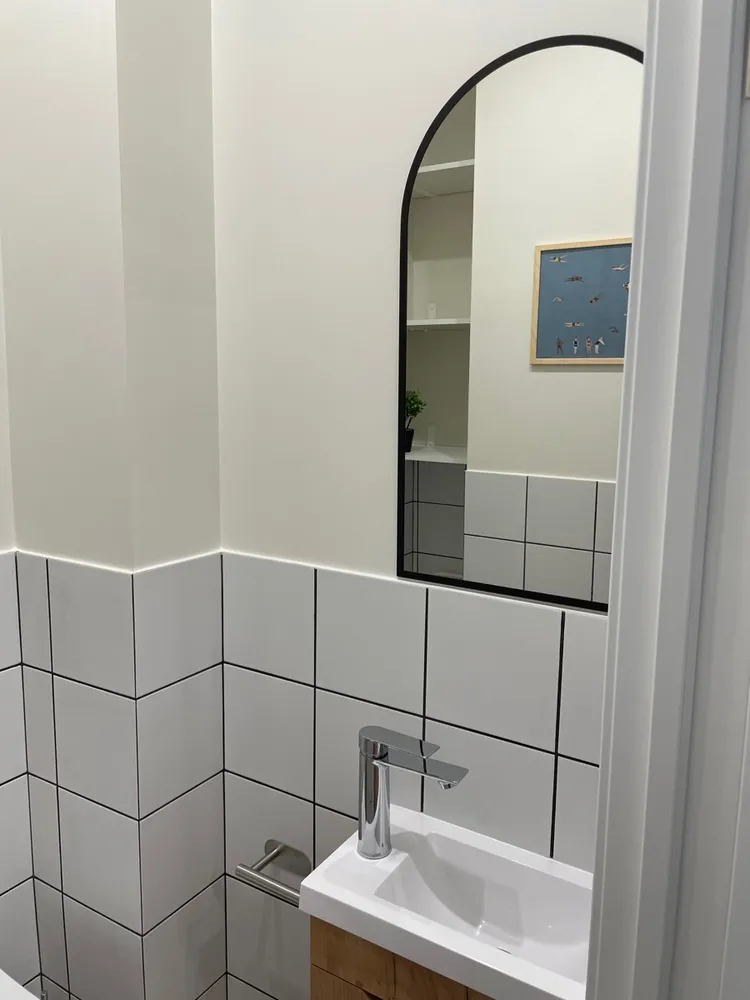 Ты вешаешь его на стену – и пространство меняется. Исчезает ощущение «просто ванной», появляется зона для ритуала. Умывание, бритье, нанесение макияжа – каждое действие становится осознаннее, когда отражение кристально чистое, без искажений и зеленоватого оттенка дешёвого стекла. Чёрный матовый контур не спорит с отделкой, а тихо работает на контраст, делая белое – белее, а хром – ярче.