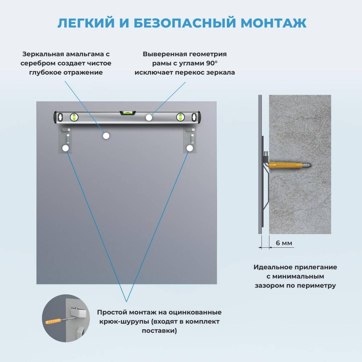 Когда ты вешаешь его на стену, оно не кричит о себе. Оно тихо занимает своё место, сливаясь с поверхностью благодаря безрамочной конструкции, и начинает работать. Работать на твою уверенность, на твой стиль, на твоё восприятие себя. Металлические крепления скрыты, дюбель-гвозди в комплекте – монтаж займёт несколько минут, а служить будет десятилетия.