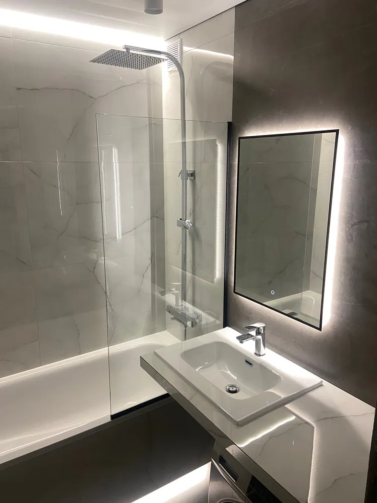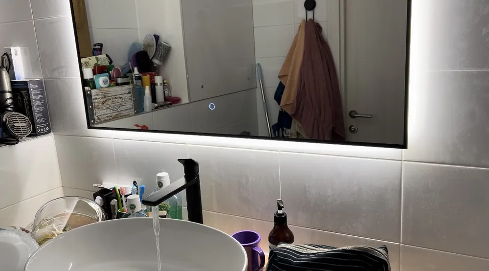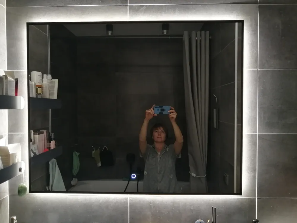 В его фоновой подсветке читается философия комфорта. Светодиодная лента 120 LED/м скрыта за полотном японского стекла AGC GLASS MIROX 3G, создавая не источник света, а сам светящийся ореол. Температура 4000K – золотая середина между холодной ясностью и тёплым уютом, та самая, что используют визажисты. Никакого запотевания, никаких искажений цвета – только ваше истинное отражение, обрамлённое магией ровного, бесшовного свечения.