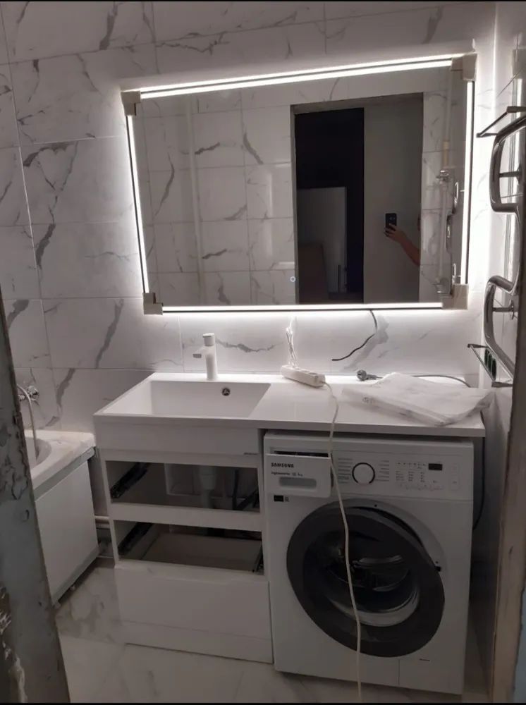 Ты подходишь к нему – и не нужно искать выгодный ракурс. Фронтальная LED-подсветка с температурой 4000 К – это свет визажиста и фотографа, собранный в одной полосе. Он не бьёт в глаза, не искажает цвет кожи и помады – он мягко рассеивается, подсвечивая каждую деталь. Это не просто зеркало в ванной – это личная студия красоты, где ты всегда в кадре.