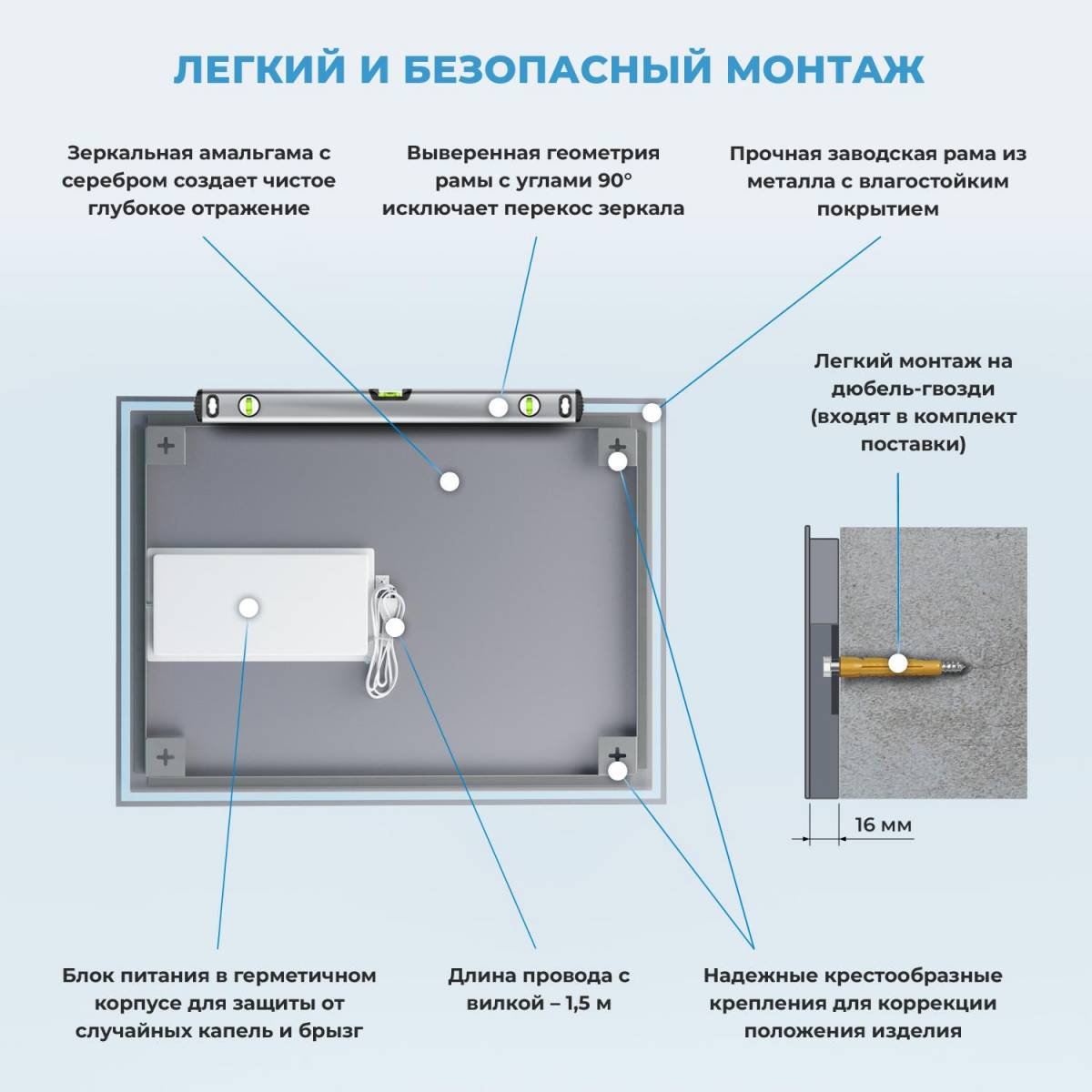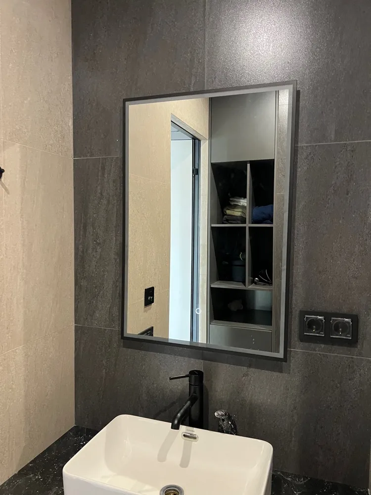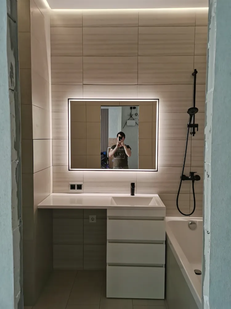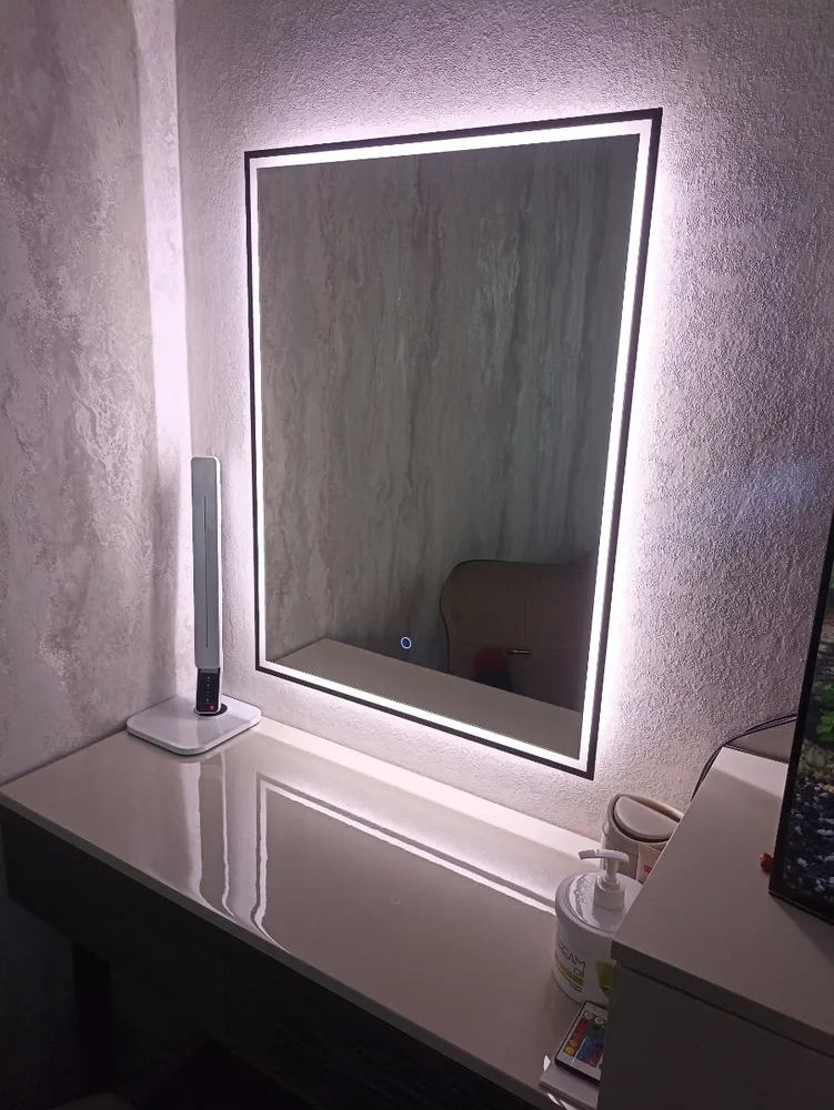 Когда ты касаешься сенсора, свет включается плавно, без резкости. Длительное нажатие позволяет найти свою идеальную яркость – ту, при которой ты видишь себя именно так, как хочешь. Умный контроллер запомнит этот выбор. Чёрный контур и тонкая рама растворяются в стене, оставляя в воздухе только твоё отражение и свет. Это не функциональный предмет – это элемент интерьера, который молчаливо одобряет твой выбор.
